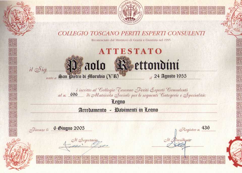 Iscritto al Collegio Toscano Perito Esperto Consulente al n° 696 di categoria e specialità Legno – Arredamento – Pavimenti in legno
